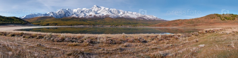 Панорама алтайского озера Джангыскол на горном плато Эштыкель. Алтай, Сибирь, Россия