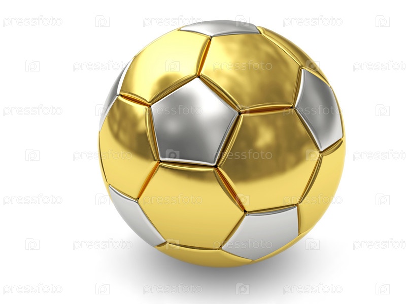 Золотой футбольный мяч на белом фоне в 3d