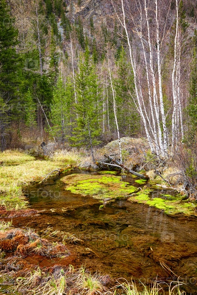 Болотистый ручей в алтайской тайге