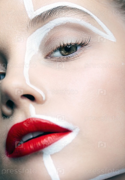 Крупным планом красота моды выстрел женского лица. Женщина с необычным креативным макияжем