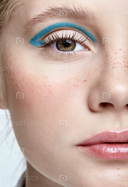 Крупный план человеческого женского лица. Женщина с косметикой красоты лица моды