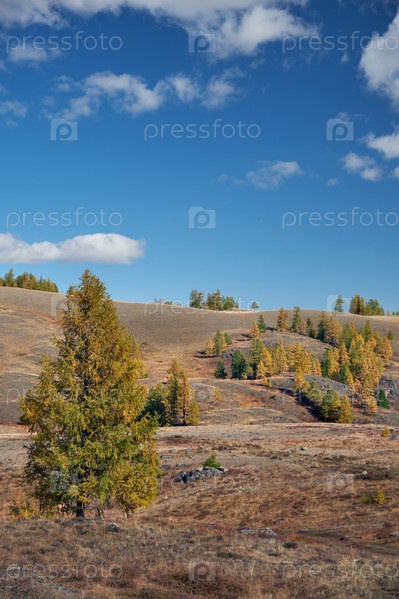 Эштыкельское плато с лиственничным лесом в осенний сезон