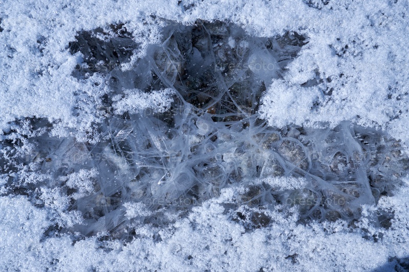 Текстура кристаллов инея по льду реки. Естественный зимний снежный фон