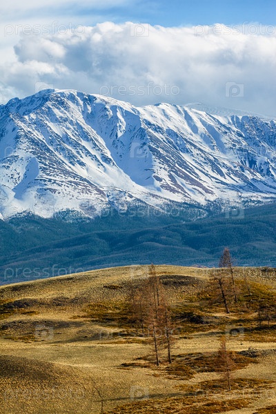 Алтайские горы в районе Курая на фоне Северо-Чуйского хребта
