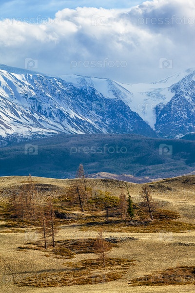 Алтайские горы в районе Курая на фоне Северо-Чуйского хребта