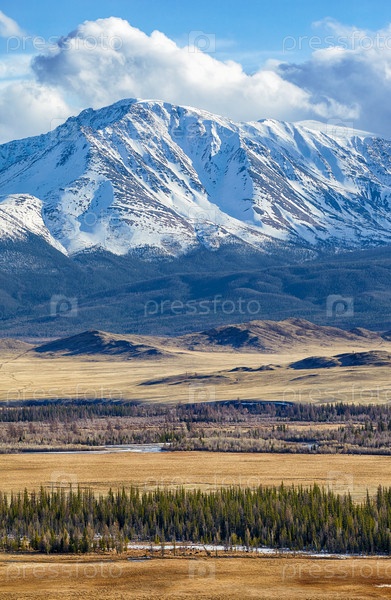 Алтайские горы в районе Курая на фоне Северо-Чуйского хребта