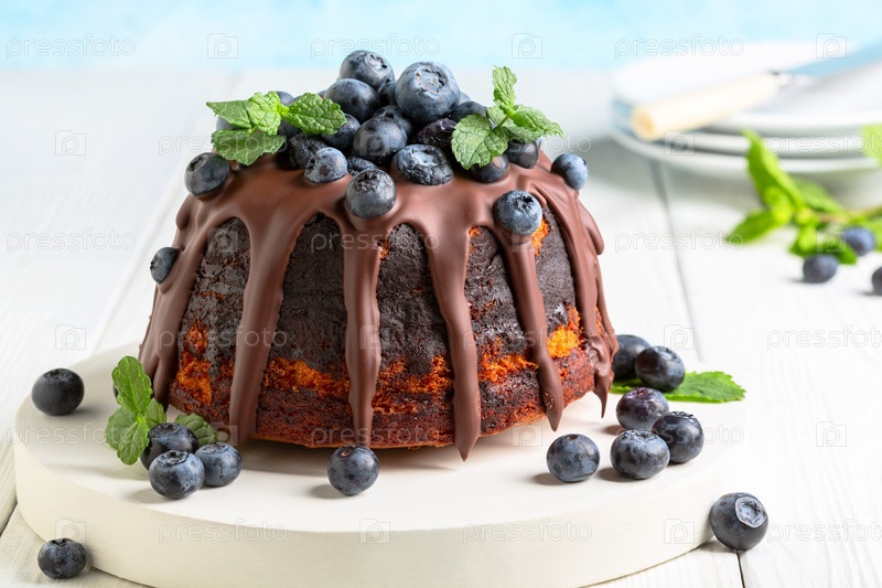 Мраморный бисквит с шоколадной глазурью и черникой