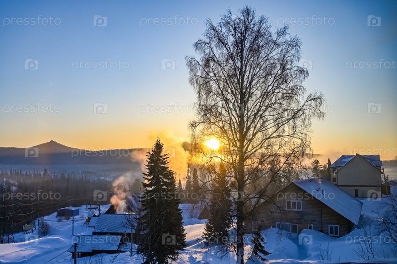 Рассвет зимой в деревне