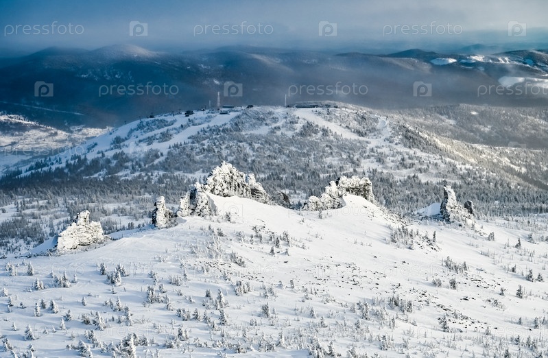 Северная долина с холмами зимой