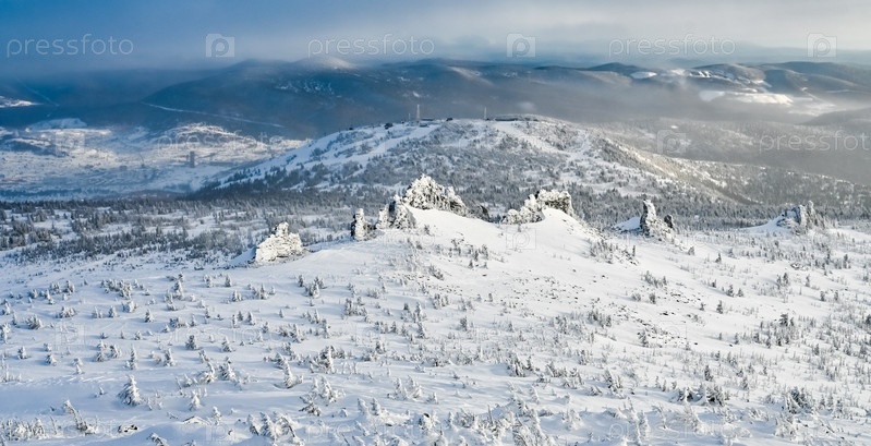Скала зимой покрыта снегом