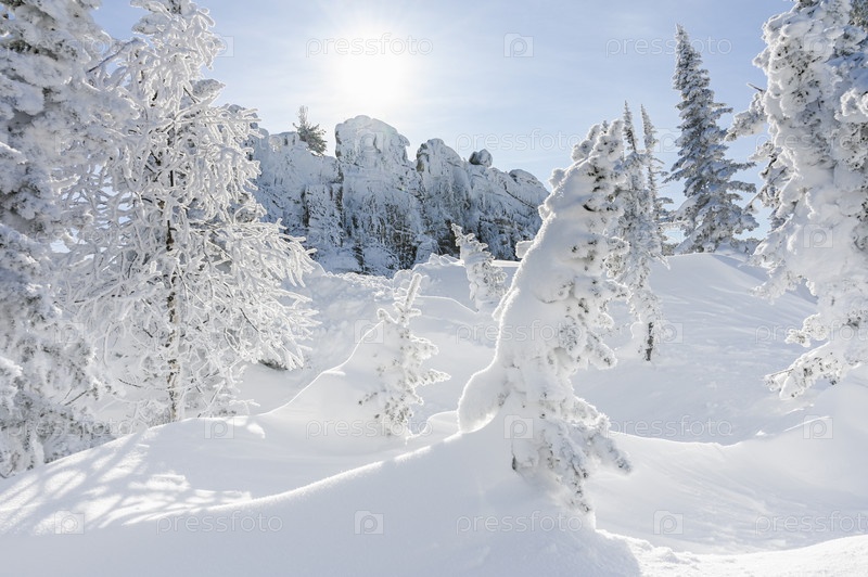 Заснеженные деревья в зимнем пейзаже