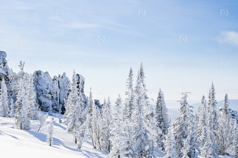 Заснеженные деревья в зимнем пейзаже