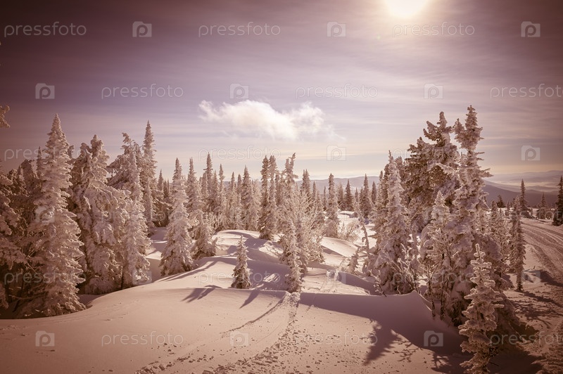 Дерево в снегу на солнце
