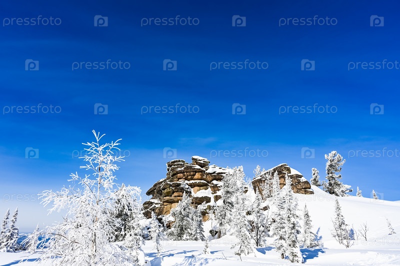 Скала зимой покрыта снегом