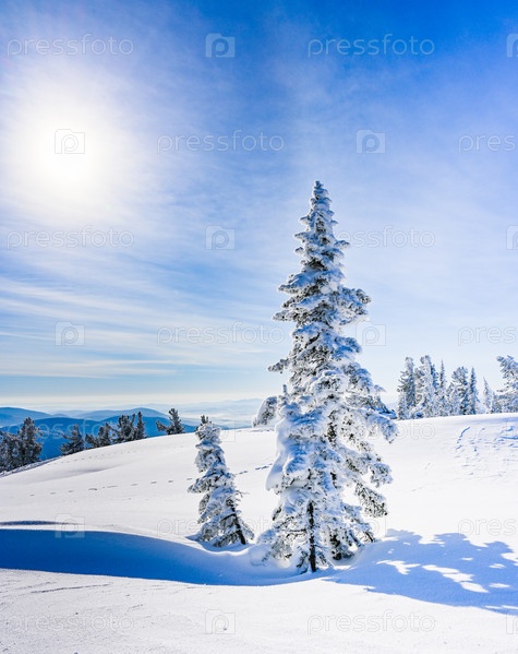 Заснеженные деревья в зимнем пейзаже