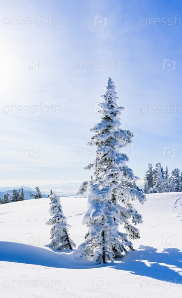 Заснеженные деревья в зимнем пейзаже