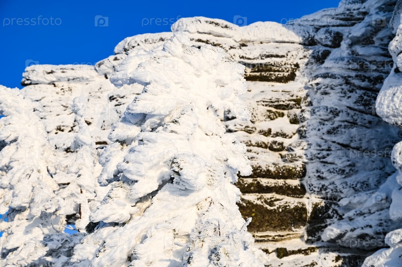 Скала зимой покрыта снегом