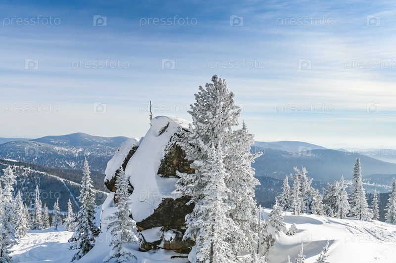 Скала зимой покрыта снегом