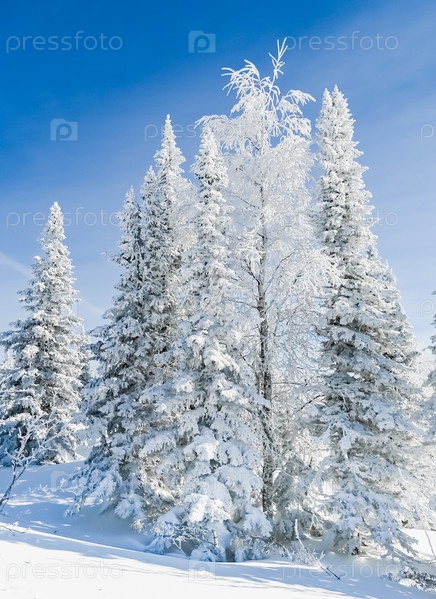 Заснеженные деревья в зимнем пейзаже