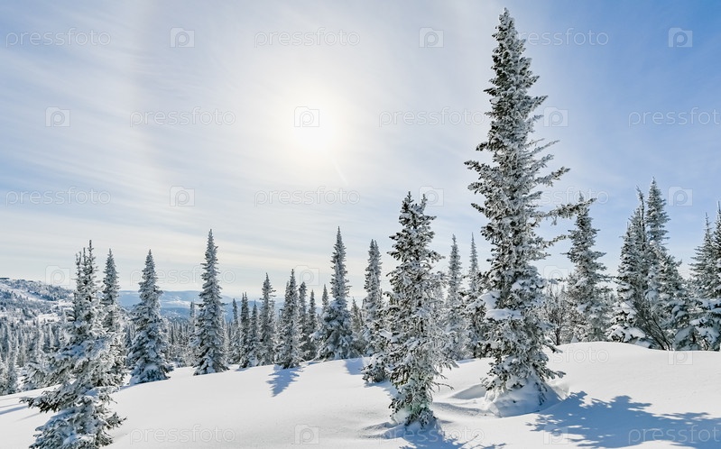 Заснеженные деревья в зимнем пейзаже
