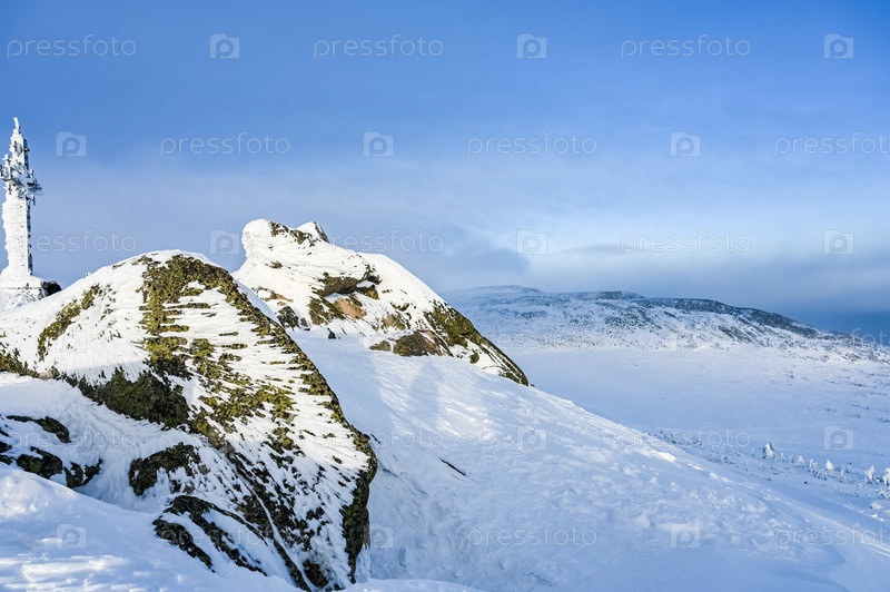 Скала зимой покрыта снегом