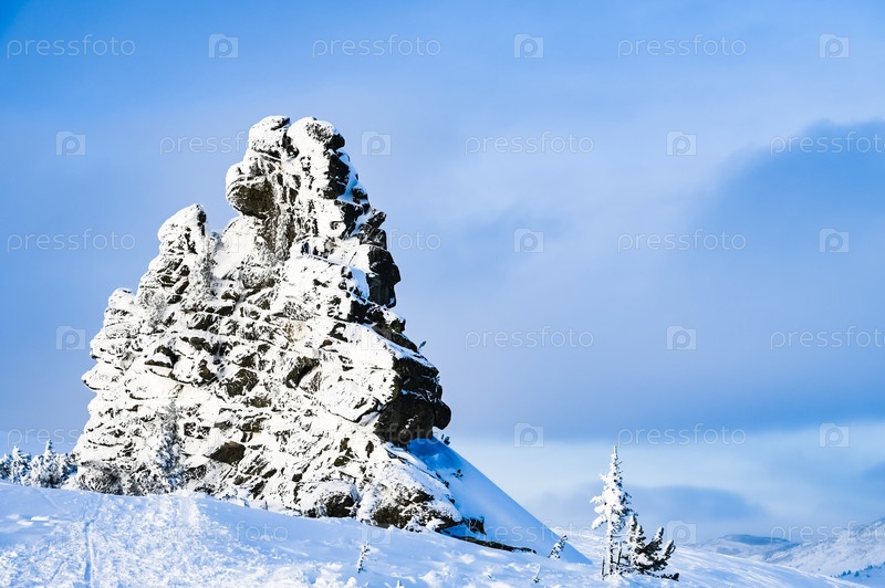 Скала зимой покрыта снегом