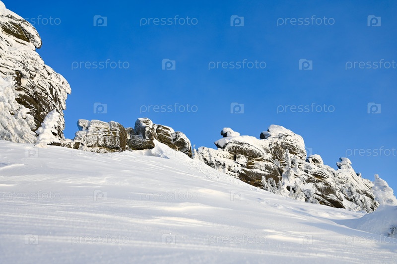 Скала зимой покрыта снегом