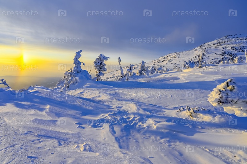 Красивый зимний закат в горах