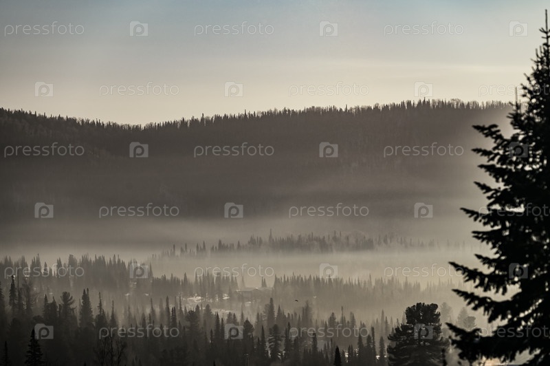 Северная долина с холмами зимой
