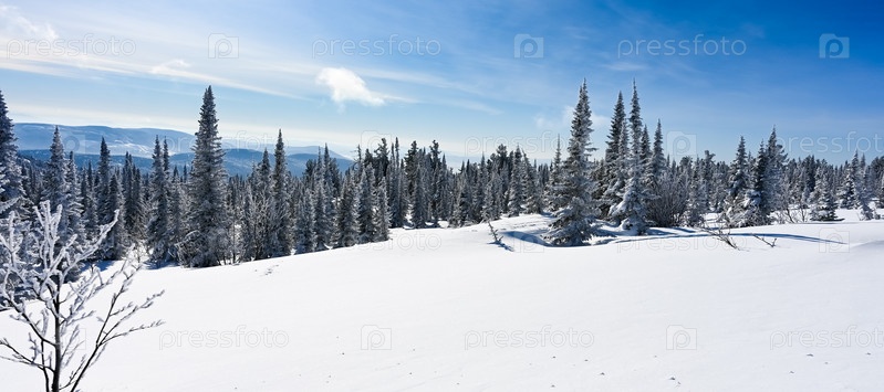 Заснеженные деревья в зимнем пейзаже