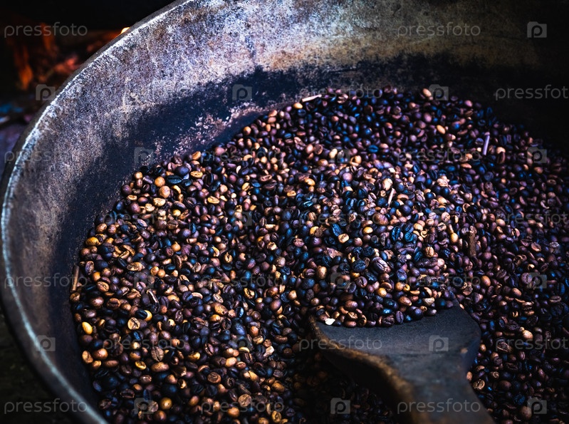 Приготовление обжаривания кофейных зерен на костре