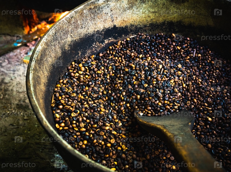 Приготовление обжаривания кофейных зерен на костре