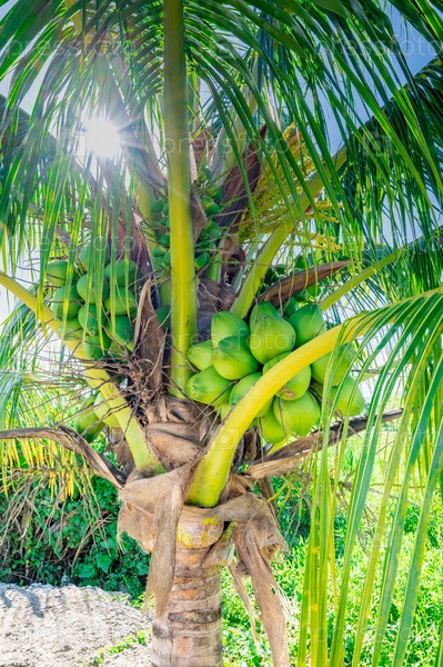 Зеленая пальма с плодами кокоса