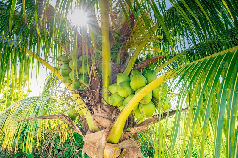 Зеленая пальма с плодами кокоса