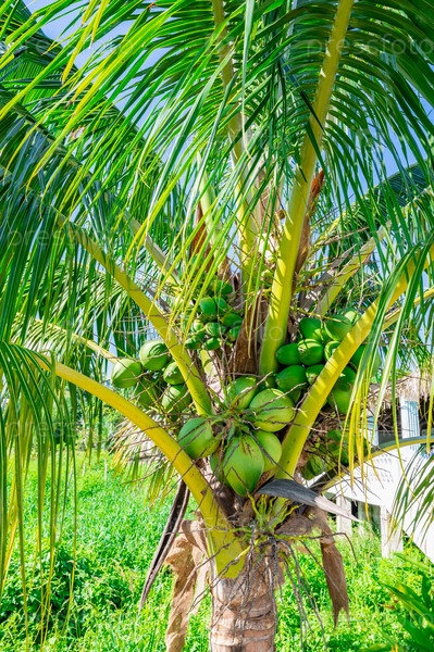 Зеленая пальма с плодами кокоса