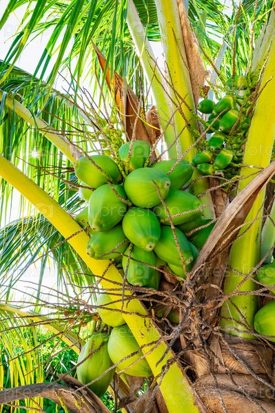 Зеленая пальма с плодами кокоса