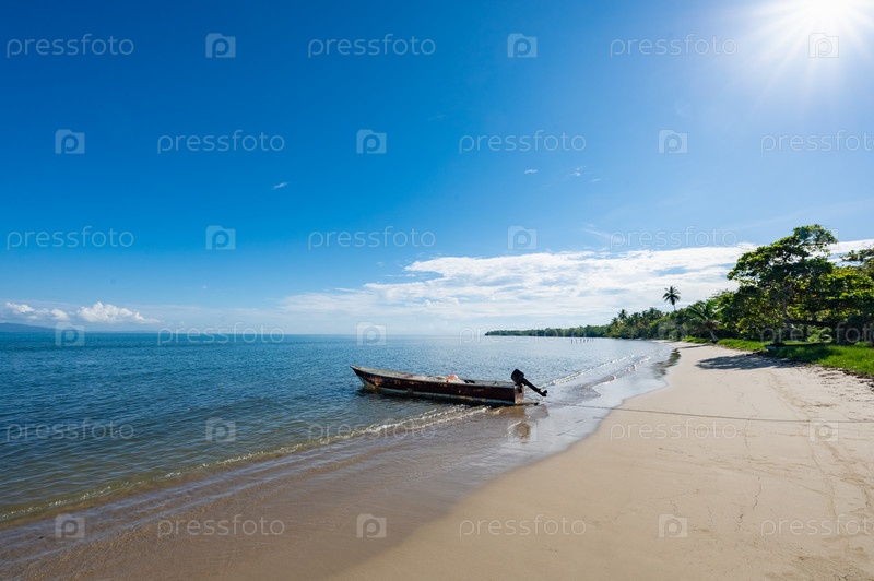 Деревянная традиционная лодка у залива