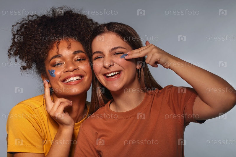 Женская дружба. Две счастливые многоэтнические подруги-подростки веселятся, нанося маску на лицо