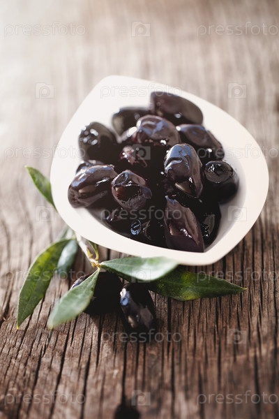 Чаша с черными оливками на столе