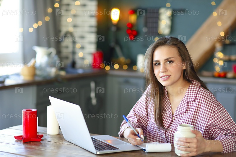 Женщина-фрилансер делает заметки дома