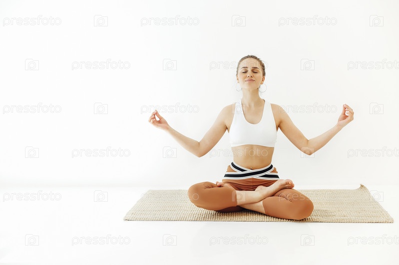 Стройная женщина медитирует в позе лотоса