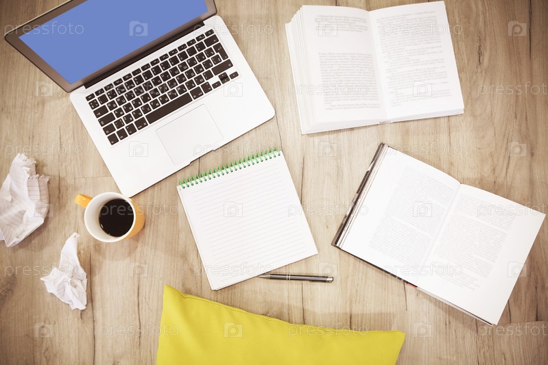 Ноутбук и книги работают дома