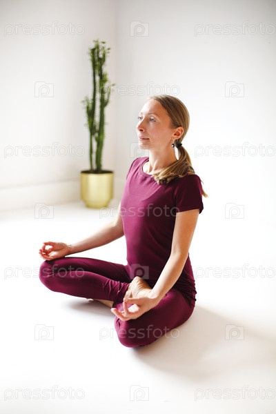 Гибкая женщина занимается йогой дома
