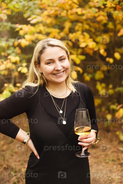 Портрет женщины с белым вином на открытом воздухе