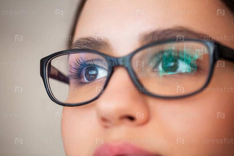 Очаровательная женщина в очках смотрит в сторону