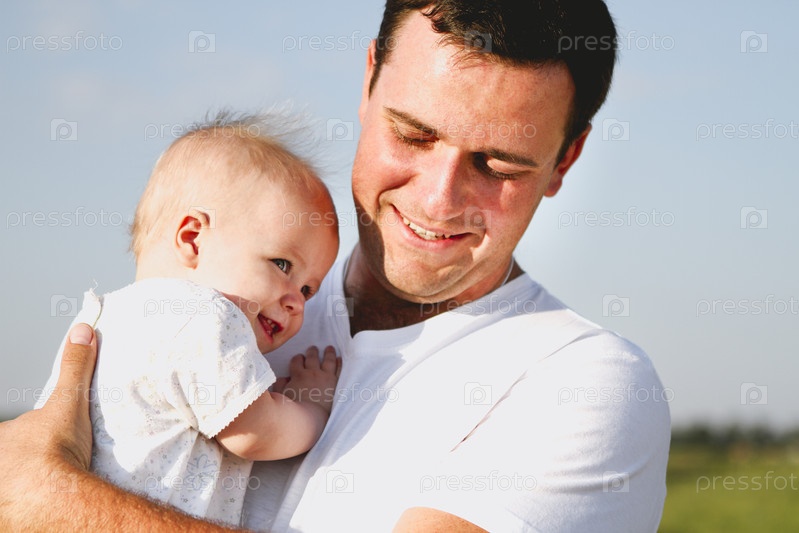 Счастливый отец с ребенком в сельской местности