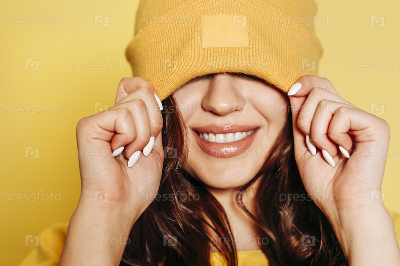 Жизнерадостная женщина в желтом обмундировании и шляпе