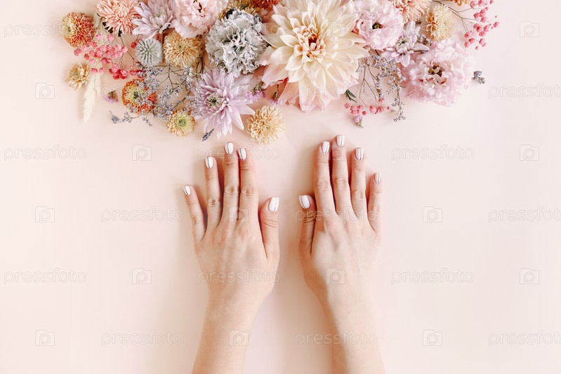 Женщина с маникюром и цветами