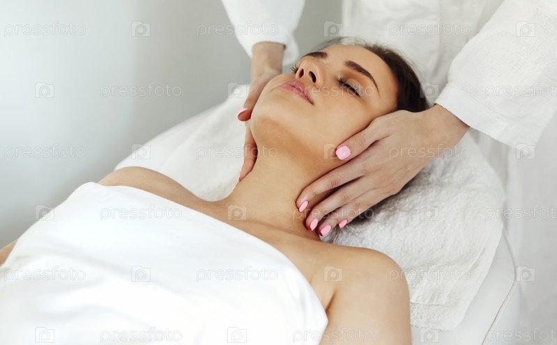 Терапевт-массажист массирует лицо клиента