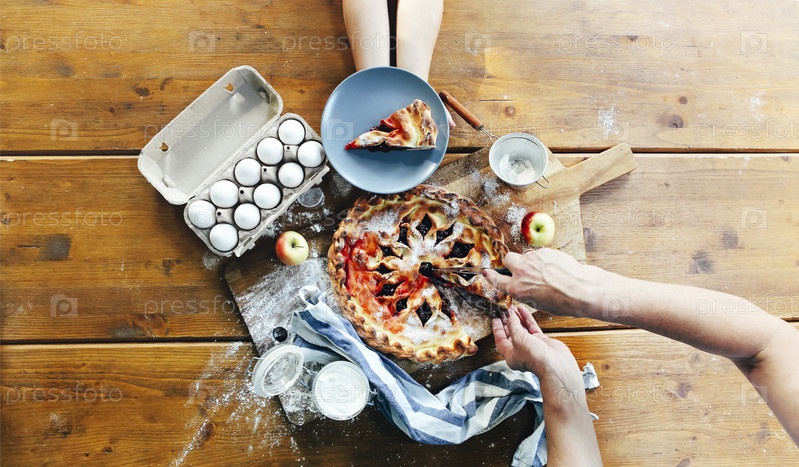 Урожай режет пирог на столе